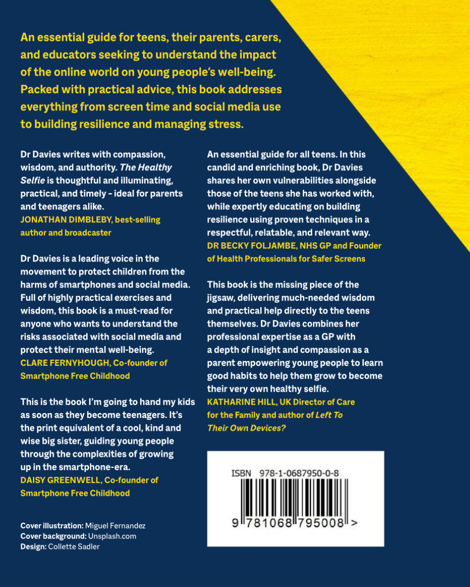 THE HEALTHY SELFIE empowers teens to build a healthier relationship with themselves and their devices. Written by digital wellbeing expert Dr Susie Davies, this essential guide helps adolescents explore the impact of social media on self-esteem, self-image, and mental health. Each chapter is packed with practical tips and exercises to develop self-acceptance, build self-esteem, and foster resilience along with self-help exercises and tools for reducing screen time.